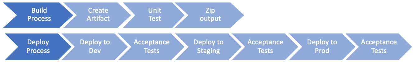 Steps: Build. Unit Test. Archive output folder into Zip file.