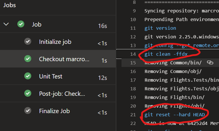 Every pipeline run should be independent of others. Even with the best of intentions, it’s possible to introduce a bug in the pipeline that’s caused by a previous run. Make sure that all checkouts of repositories are done at the beginning of the pipeline, and that they are doing a git clean of their working folder: